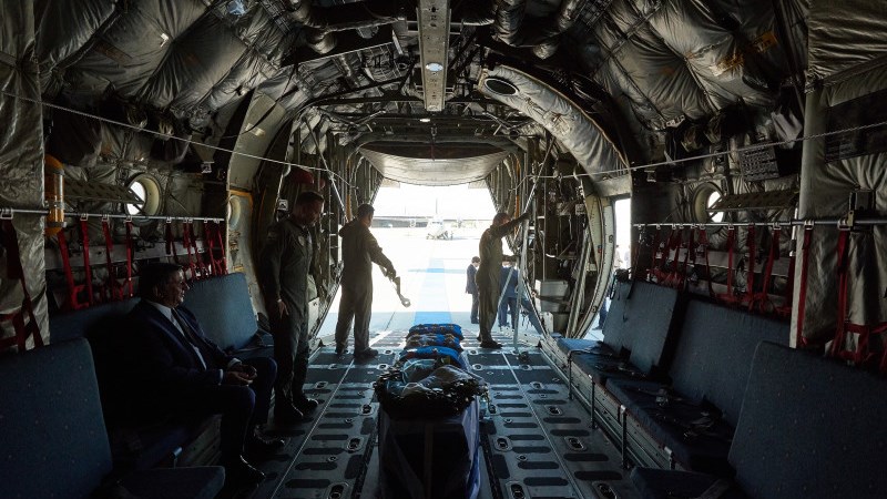 Σύντροφος μέχρι το τέλος, ο φύλακας-άγγελος του πρώην Πρωθυπουργού κάθεται δίπλα του, σε ένα από τα καθίσματα που προσαρμόσθηκαν στο μεταγωγικό πολεμικό αεροσκάφος, και κοιτάζει τη σορό του λίγα λεπτά πριν ξεκινήσουν για το τελευταίο κοινό τους ταξίδι στα Χανιά.