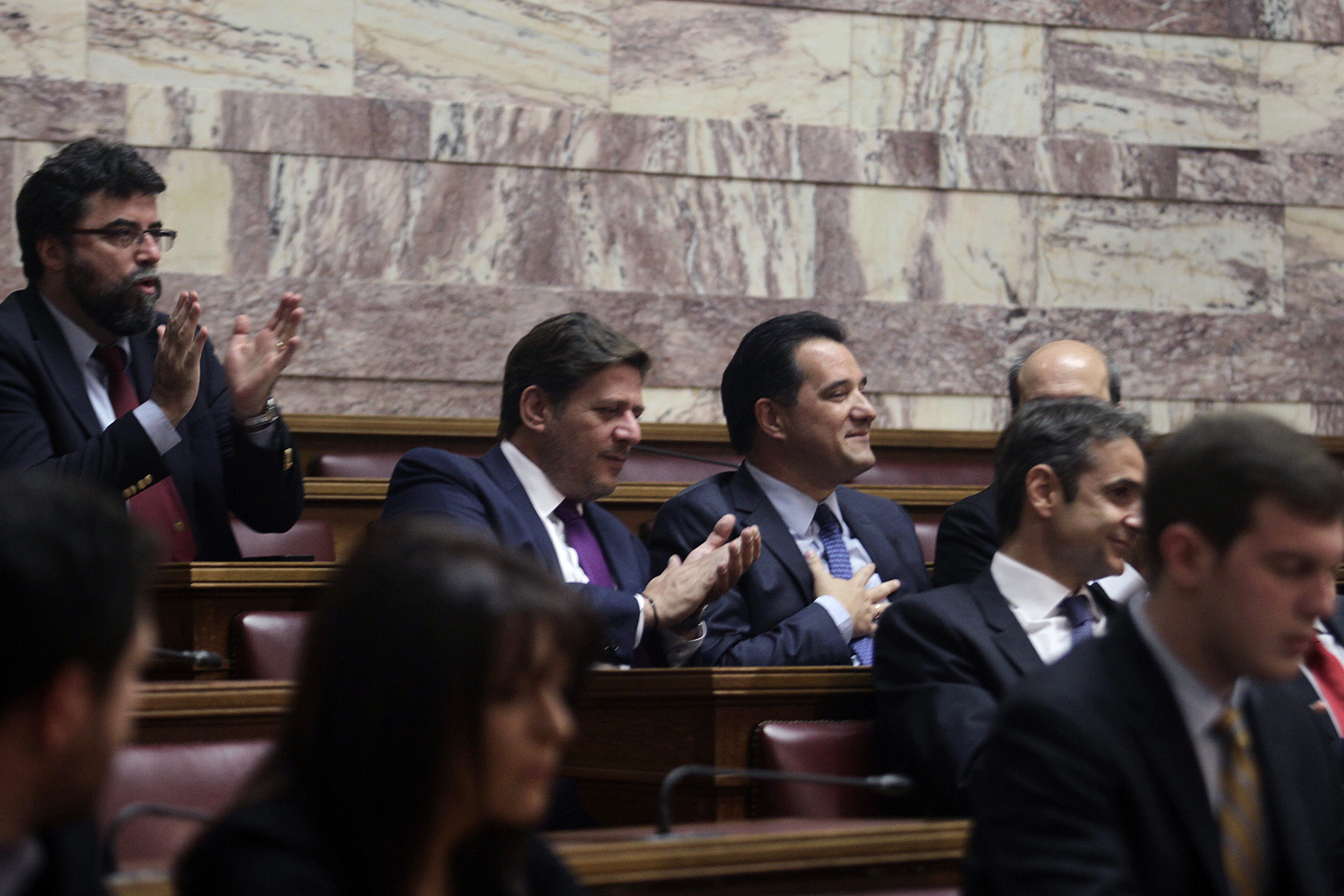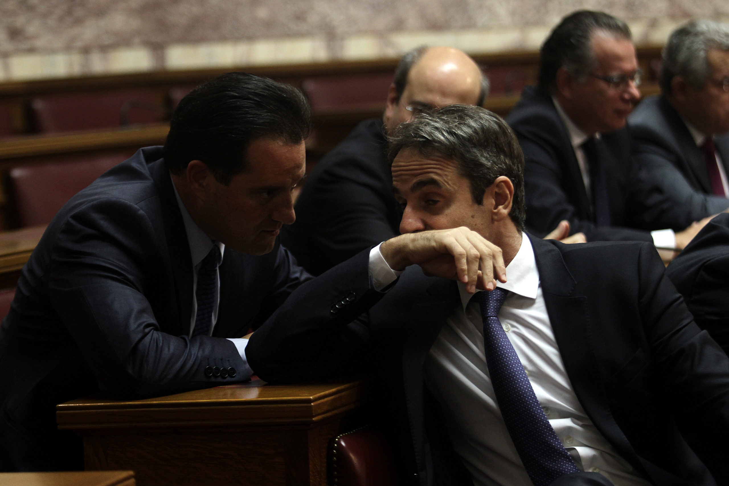 Νωρίτερα, οι Κυριάκος Μητσοτάκης και Άδωνις Γεωργιάδης χαιρετήθηκαν κατά τη διάρκεια της Κοινοβουλευτικής Ομάδας της Νέας Δημοκρατίας.
