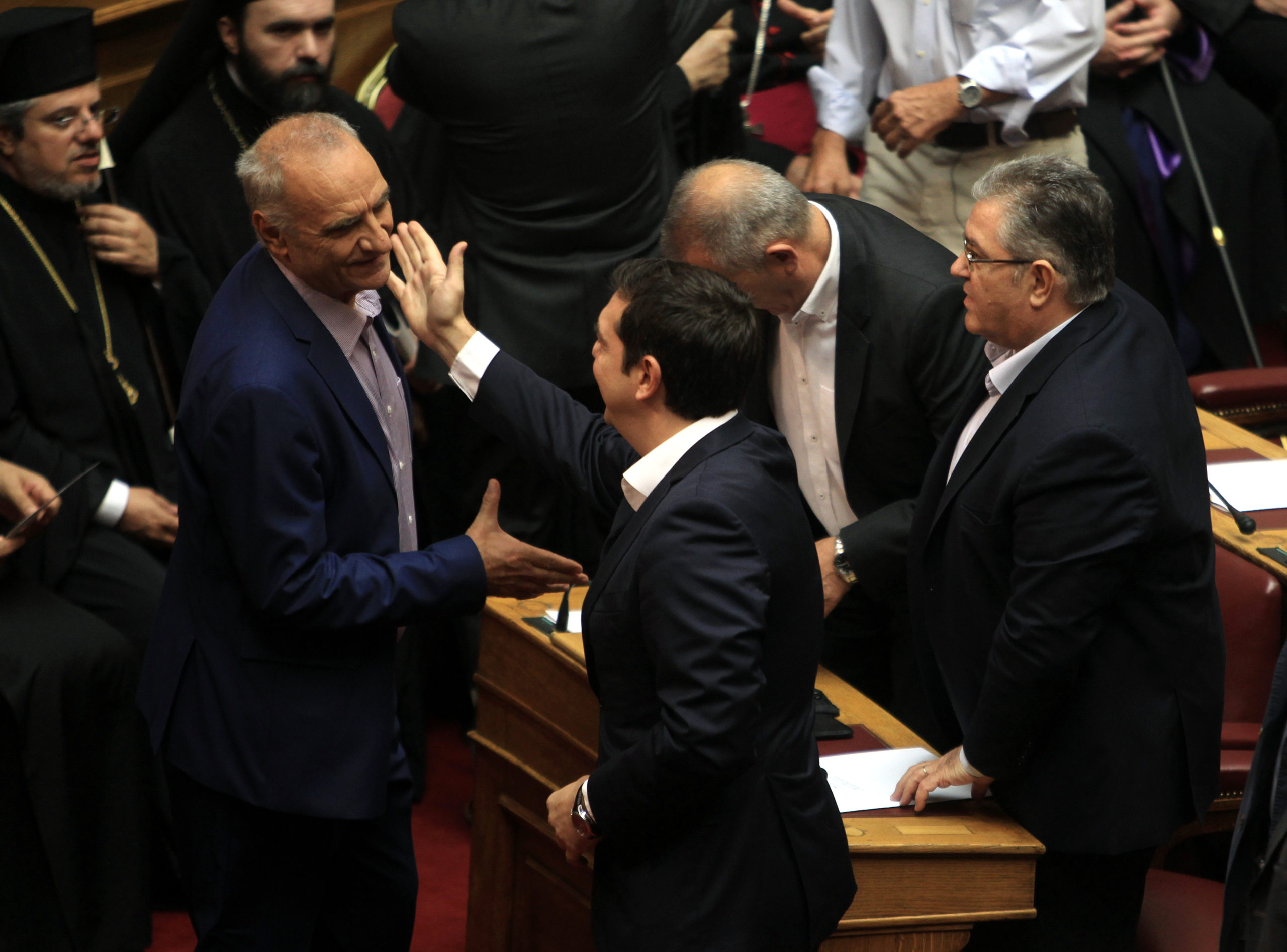 Τα πηγαδάκια έδιναν και έπαιρναν το πρωί του Σαββάτου στο κοινοβούλιο, στο περιθώριο της ορκωμοσίας της νέας Βουλής.