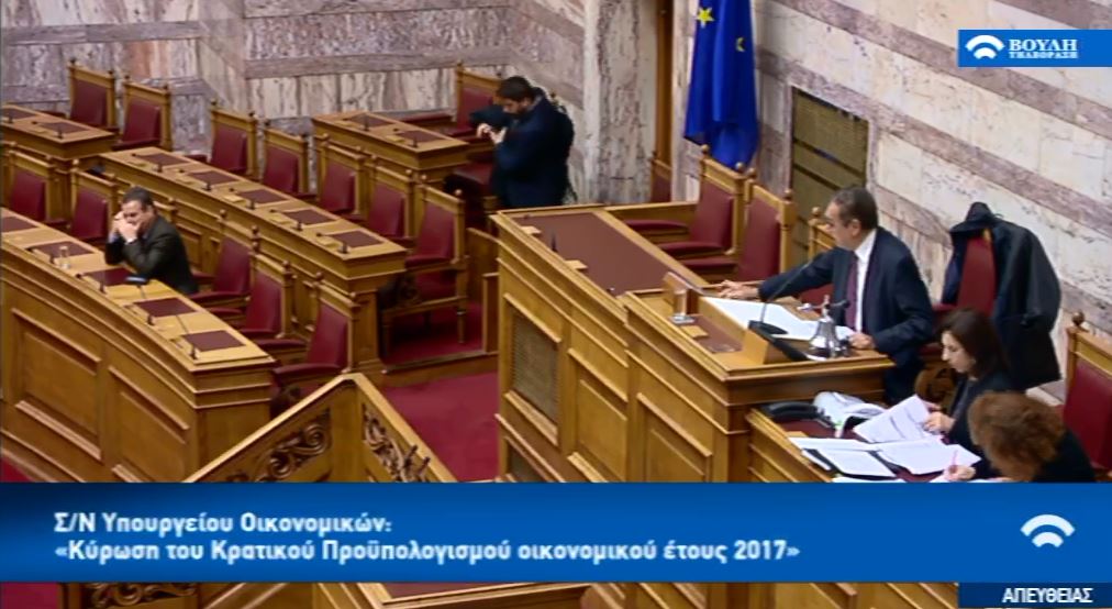 Όπως βλέπουμε στις φωτογραφίες, ο κ. Κρεμαστινός τοποθέτησε το παλτό του στην έδρα του Προέδρου της Βουλής, ενώ στη συνέχεια το παλτό του βουλευτή «εξαφανίστηκε».