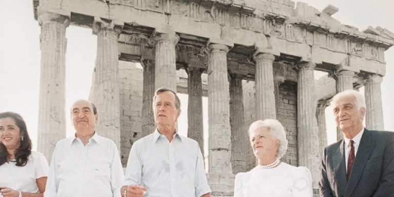 Ο Μπους είχε μιλήσει αρκετές φορές για τα «dolmadakia», της Μαρίκας Μητσοτάκη, ενώ αναφερόταν στον Κωνσταντίνο Μητσοτάκη ως φίλο του. Ο Αμερικανός πολιτικός έμεινε άλλη μία φορά στο σπίτι του Κωνσταντίνου Μητσοτάκη, το 1994.