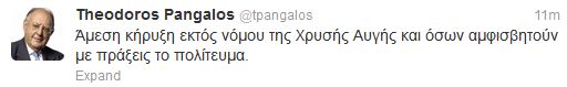Ο Θεόδωρος Πάγκαλός ζητά να τεθεί εκτός νόμου η Χρυσή Αυγή.