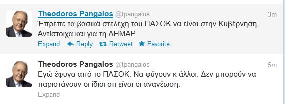 «Εγώ έφυγα από το ΠΑΣΟΚ. Να φύγουν κ άλλοι. Δεν μπορούν να παριστάνουν οι ίδιοι οτι είναι οι ανανέωση», τονίζει σε σχόλιό του μέσα από τον προσωπικό του λογαριασμό στο Twitter.