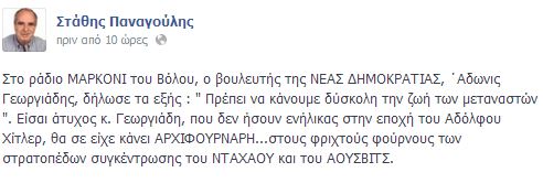 Ο βουλευτής του ΣΥΡΙΖΑ σχολίασε μέσω facebook τις δηλώσεις του Άδωνι Γεωργιάδη για τους μετανάστες.