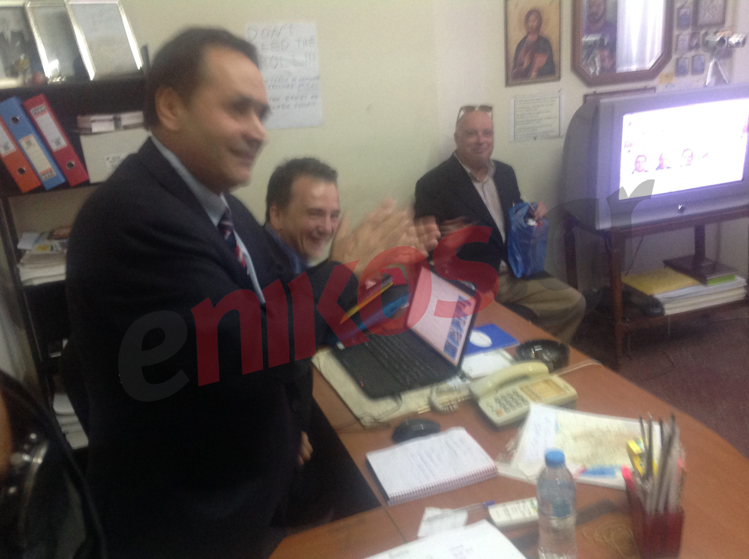 Βλέποντας τα exit poll και τα ποσοστά της Ένωσης Κεντρώων οι συνεργάτες του Βασίλη Λεβέντη δεν μπόρεσαν να κρύψουν τον ενθουσιασμό τους.