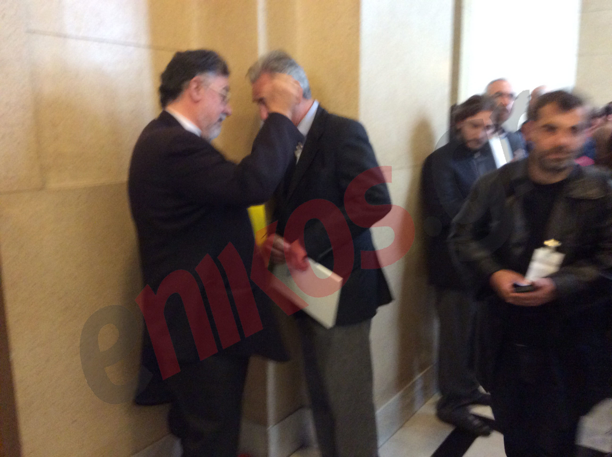 Ο αναπληρωτής υπουργός Δημόσιας Τάξης και Προστασίας του Πολίτη Γιάννης Πανούσης συνομιλεί με τον βουλευτή του Ποταμιού, Σπύρο Λυκούδη μετά την ορκωμοσία της νέας Βουλής.