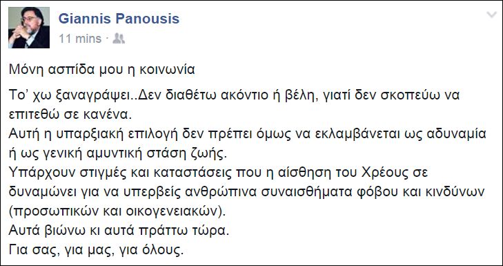 Για σας, για μας, για όλους» έγραψε ο κ. Πανούσης.