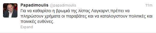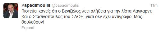 «Μας δουλεύουν» λέει σε ανάρτησή του στο twitter ο Δημήτρης Παπαδημούλης, στρέφοντας τα βέλη του στον Ευάγγελο Βενιζέλο για τη λίστα Λαγκάρντ.