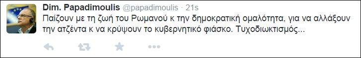 «Παίζουν με τη ζωή του Ρωμανού και την δημοκρατική ομαλότητα, για να αλλάξουν την ατζέντα και να κρύψουν το κυβερνητικό φιάσκο. Τυχοδιωκτισμός…», έγραψε χαρακτηριστικά στον προσωπικό του λογαριασμό στο twitter ο Δημήτρης Παπαδημούλης.