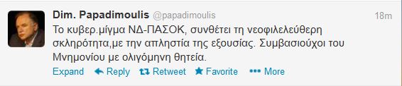 «Συμβασιούχοι του μνημονίου με ολιγόμηνη θητεία» σχολιάζει για τη νέα κυβέρνηση ο Δημήτρης Παπαδημούλης.