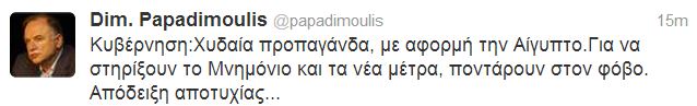 «Κυβέρνηση: Χυδαία προπαγάνδα, με αφορμή την Αίγυπτο. Για να στηρίξουν το Μνημόνιο και τα νέα μέτρα, ποντάρουν στον φόβο. Απόδειξη αποτυχίας…»