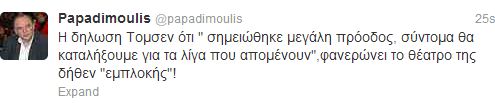 Παπαδημούλης:”Θέατρο δήθεν εμπλοκής” Enikos Newsroom 11:11, Τετάρτη 17 Οκτωβρίου 2012 πολιτική Δείτε το tweet του βουλευτή του ΣΥΡΙΖΑ Δημήτρη Παπαδημούλη: ΔΗΜΗΤΡΗΣ ΠΑΠΑΔΗΜΟΥΛΗΣ ΤWITTER Μοιράσου το: σχολίασε κι εσύ (0 σχόλια) Ακολουθήστε το enikos.gr στο Google News και μάθετε πρώτοι όλες τις ειδήσεις Δείτε όλες τις τελευταίες ειδήσεις από την Ελλάδα και τον Κόσμο στο enikos.gr Ειδήσεις Ροή Ειδήσεων 5 ώρες πριν Κρήτη: «Τον έσφαξα σαν τον χοίρο» είπε ο 64χρονος αδελφοκτόνος στους αστυνομικούς – Είχε πυροβολήσει πισώπλατα συγχωριανό του το 2011 3 ώρες πριν Βιολάντα: Το έγγραφο που «καίει» τον ιδιοκτήτη και η μαρτυρία του υδραυλικού – Μυστήριο με εκσκαφές σε άλλο εργοστάσιο της εταιρείας 4 ώρες πριν Φυλακές Δομοκού: Ισοβίτης σκότωσε βαρυποινίτη στο γραφείο του αρχιφύλακα 6 ώρες πριν Καισαριανή: Βανδάλισαν το μνημείο των 200 εκτελεσθέντων μετά την αποκάλυψη των ιστορικών φωτογραφιών – Η ανακοίνωση του Δήμου 2 ώρες πριν Eurovision – Sing for Greece 2026: Ο Akylas με το «Ferto» θα εκπροσωπήσει την Ελλάδα στη Βιέννη 4 ώρες πριν Οι επιστήμονες εντόπισαν 5 τύπους ύπνου: Οι επιπτώσεις τους στην υγεία και τη συμπεριφορά, σύμφωνα με μελέτη 7 ώρες πριν Οργάνωση ψυγείου: Πώς να αποθηκεύσετε σωστά τα τρόφιμα χρησιμοποιώντας τις ζώνες θερμοκρασίας της συσκευής 5 ώρες πριν Αριθμολογία: Οι 4 τυχερές ημερομηνίες γέννησης που οδηγούν στην επιτυχία 3 ώρες πριν Ένας «θησαυρός» θαμμένος για χιλιετίες – Ανακαλύφθηκε σπουδαίος αρχαίος οικισμός μέσα σε πανεπιστήμιο 16 λεπτά πριν Ασπρόπυργος: 2 τραυματίες από σύγκρουση ΙΧ με φορτηγό – Άντρας ανασύρθηκε και παρελήφθη από ασθενοφόρο λιπόθυμος 31 λεπτά πριν Εργκίν Αταμάν: «Τέλος οι μεταγραφές» – «Μπαίνει» ο Λεσόρ 44 λεπτά πριν Τουρκία: Διαψεύδει σενάρια κοινής ναυπήγησης πολεμικών πλοίων με τις ΗΠΑ 59 λεπτά πριν Ιταλία: Επεισόδια στο Μπάρι μετά τη νέα ήττα στη Serie B – Δείτε βίντεο από το «ντου» των οπαδών στα επίσημα 1 ώρα πριν Eurovision – Sing for Greece 2026: Παρούσα και η πρέσβης των ΗΠΑ Κίμπερλι μαζί με τον γιο της – Δείτε φώτο ENIKOS NETWORK Προληπτική αντιγήρανση: Η νέα τάση στην αισθητική που ξεκινά από τα 25 – Ποιες θεραπείες πρέπει να γίνονται Οι επιστήμονες ανακάλυψαν το χαρακτηριστικό που έχουν οι πιο ευφυείς άνθρωποι – Τι είναι ο δείκτης AQ «Χαμόγελα» στη Διώρυγα του Σουέζ: Τα έσοδα και η κίνηση πλοίων σε ανοδική πορεία Παπασταύρου: Η Ευρώπη να επενδύσει στην ενεργειακή της ασφάλεια – Επιτακτικός στόχος οι προσιτές τιμές για νοικοκυριά και ε... Ευπάθεια στο moltbook ai αποκαλύπτει email, tokens σύνδεσης και api keys Αυτός είναι ο ρόλος της μικρής τρύπας στους νυχοκόπτες – «Είμαι ο μόνος που δεν το ήξερε;»» περισσότερα 00:45 , Δευτέρα 16 Φεβρουαρίου 2026 Πολιτικές παρεμβάσεις ώστε τα φωτογραφικά ντοκουμέντα από τις εκτελέσεις στο Σκοπευτήριο της Καισαριανής να μείνουν στη χώρα Τις απόψεις τους και τις προτάσεις τους για την αξιοποίηση των φωτογραφιών – ντοκουμέντων, από... 19:17 , Κυριακή 15 Φεβρουαρίου 2026 Τσίπρας: «Να αγοράσει η Βουλή τις φωτογραφίες από την εκτέλεση των 200 κομμουνιστών στην Καισαριανή» – Η επιστολή του στον Νικήτα Κακλαμάνη Ο πρώην πρωθυπουργός, Αλέξης Τσίπρας απέστειλε επιστολή στον πρόεδρο της Βουλής, Νικήτα Κακλαμ... 18:39 , Κυριακή 15 Φεβρουαρίου 2026 Αντώνης Σαμαράς για την απώλεια της Άννας Ψαρούδα-Μπενάκη: Εξέφρασε ένα σπάνιο πολιτικό και ατομικό ήθος Το δικό του «αντίο» στην Αννα Ψαρούδα – Μπενάκη που έφυγε από τη ζωή σε ηλικία 92 ετών ε... 18:09 , Κυριακή 15 Φεβρουαρίου 2026 Δούκας: Το συν