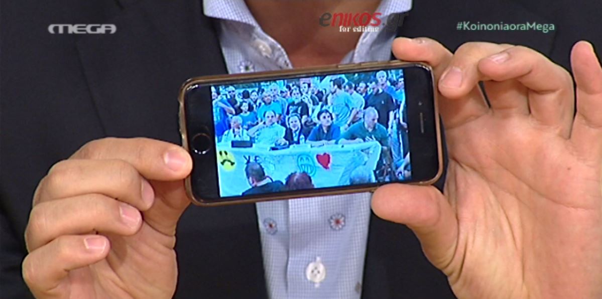 Ο βουλευτής της ΝΔ, Βασίλης Κικίλιας απάντησε στον κ. Παπαδόπουλο δείχνοντας μία φωτογραφία στο κινητό του τηλέφωνο λέγοντας «εδώ είναι επιστροφή στο μέλλον, βλέπω τον κ. Τσακαλώτο, τον κ. Καζάκη, τον κ. Βαρουφάκη και τον ταξικό αποστάτη κ. Κατρούγκαλο. Αυτό ήταν γραφικό;»