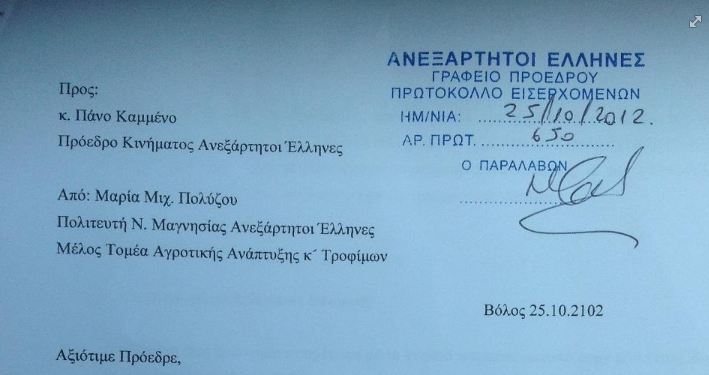 Διαβάστε την επιστολή της Μαρίας Πολύζου, προς τον πρόεδρο των Ανεξάρτητων Ελλήνων, Πάνο Καμμένο