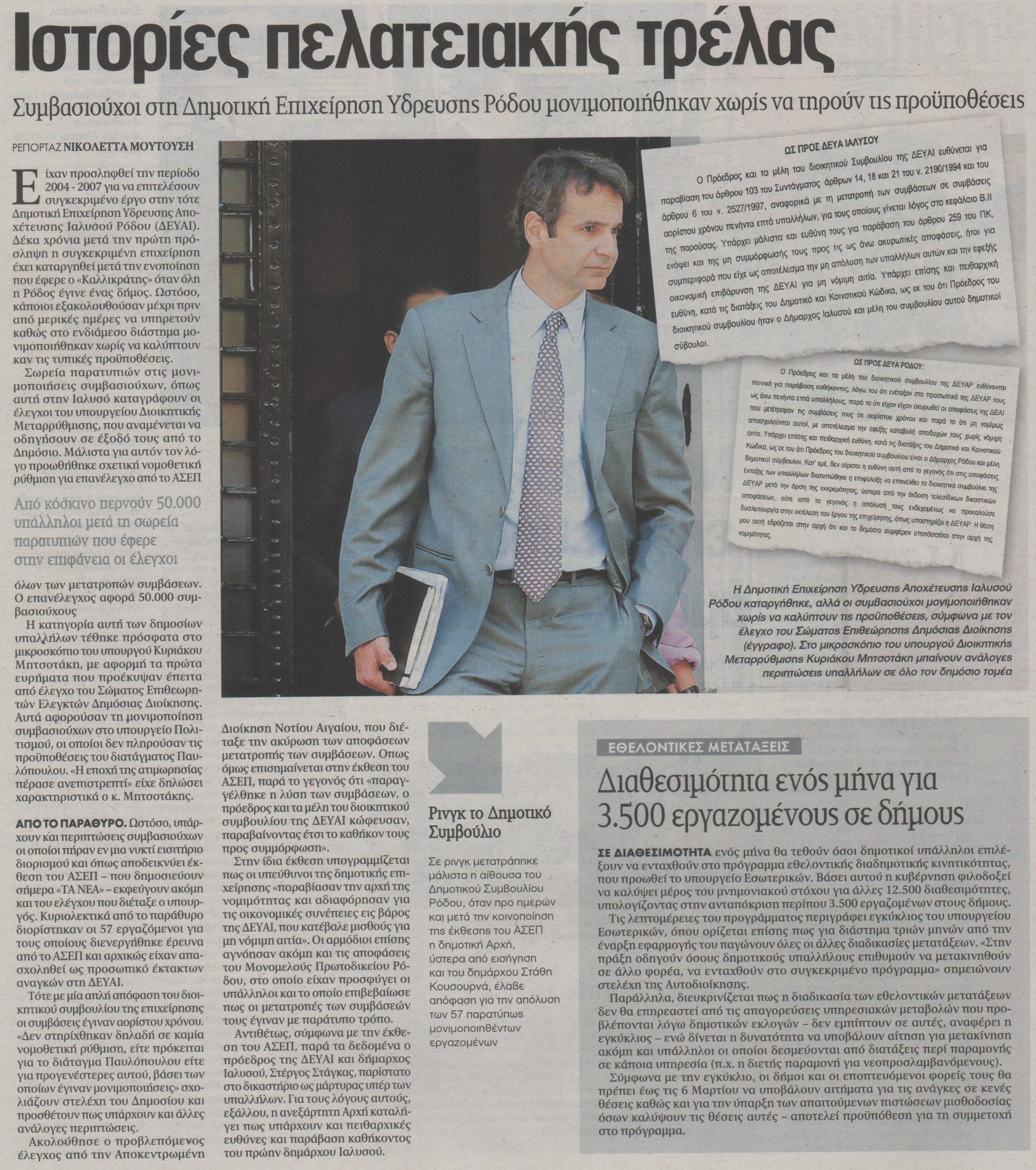 Συμβασιούχοι στη Δημοτική Επιχείρηση Ύδρευσης Ρόδου μονιμοποιήθηκαν χωρίς να τηρούν τις προϋποθέσεις.