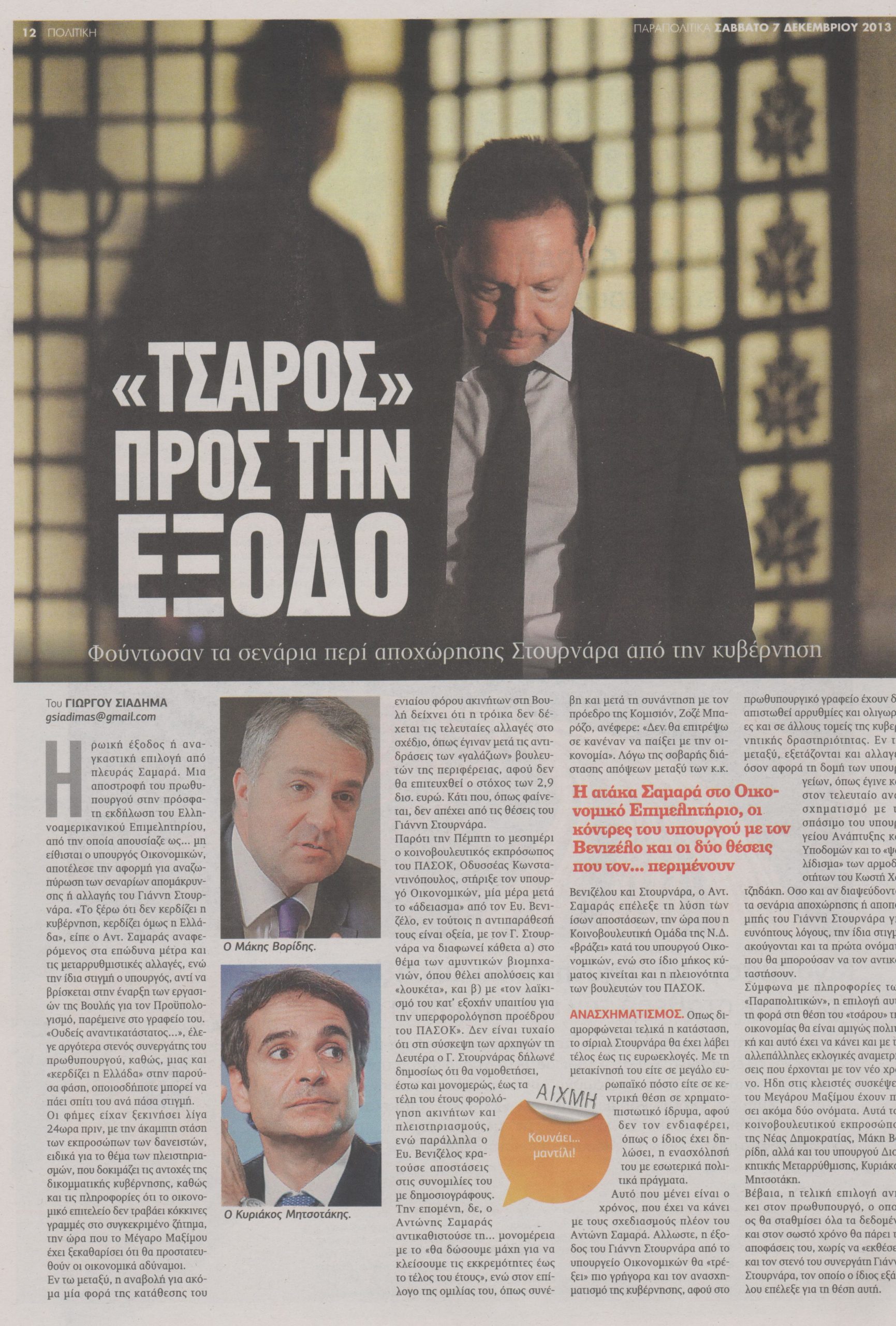 Παραπολιτικά: Προς την έξοδο ο Στουρνάρας