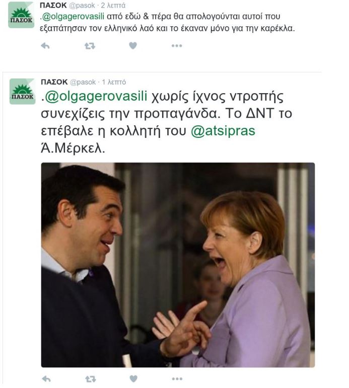 Συνεχίζεται η κόντρα ανάμεσα στην Όλγα Γεροβασίλη και το ΠΑΣΟΚ, που έχει ξεσπάσει εδώ και μερικές ώρες στο Twitter.