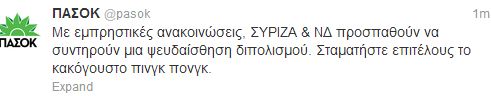 Το ΠΑΣΟΚ ανήρτησε πριν από λίγο ένα σχόλιο στο Twitter το οποίο αναφέρεται στον “χαρτοπόλεμο” της ΝΔ με τον ΣΥΡΙΖΑ: