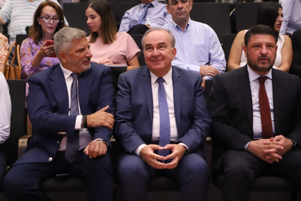 Τα συγχαρητήρια του προς τη διοίκηση και τις υπηρεσίες της Περιφέρειας για το γεγονός ότι «πέτυχαν να είναι πρωταθλητές στην απορρόφηση πόρων του ΕΣΠΑ» εξέφρασε ο Αν. Υπουργός Οικονομικών Ν. Παπαθανάσης. «Χαίρομαι που βρίσκομαι ενώπιον του κ. Πατούλη ο οποίος κατάφερε να κάνει τα λόγια πράξη και ενώπιον του κ. Χαρδαλιά που είμαι βέβαιος ότι θα συνεχίσει το έργο του» ανέφερε και επισήμανε πως στόχος είναι να εξυπηρετούνται οι πολίτες από τα έργα που χρηματοδοτούνται από τα προγράμματα του ΕΣΠΑ.
