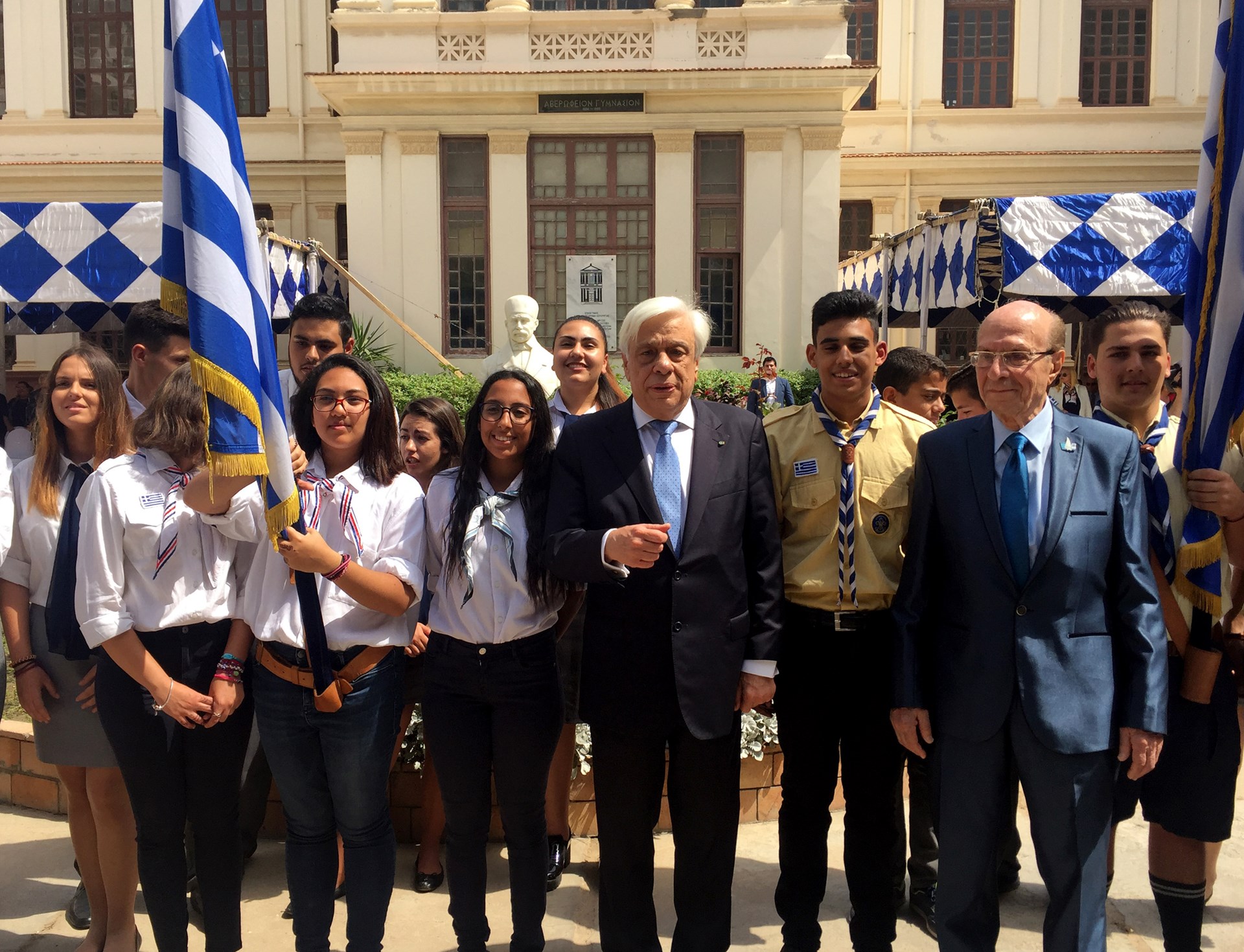 Με ελληνικές σημαίες στα χέρια και την ανάκρουση των εθνικών ύμνων της Ελλάδας και της Αιγύπτου, η Ελληνική Κοινότητα Αλεξανδρείας υποδέχτηκε σήμερα θερμά τον Πρόεδρο της Ελληνικής Δημοκρατίας κ. Προκόπη Παυλόπουλο, στο ιστορικό Ελληνικό Τετράγωνο του Σάτμπι.