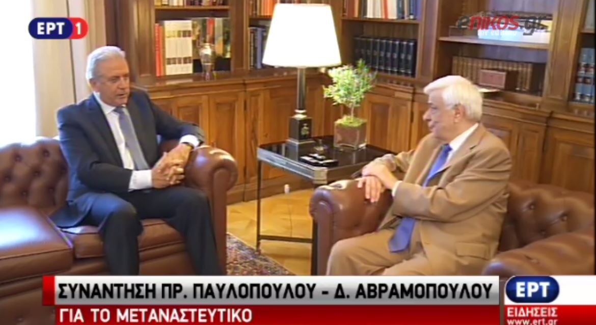 Πριν από λίγο ολοκληρώθηκε η συνάντηση που είχε ο Πρόεδρος της Δημοκρατίας, Προκόπης Παυλόπουλος με τον Επίτροπο Μετανάστευσης, Δημήτρη Αβραμόπουλο.