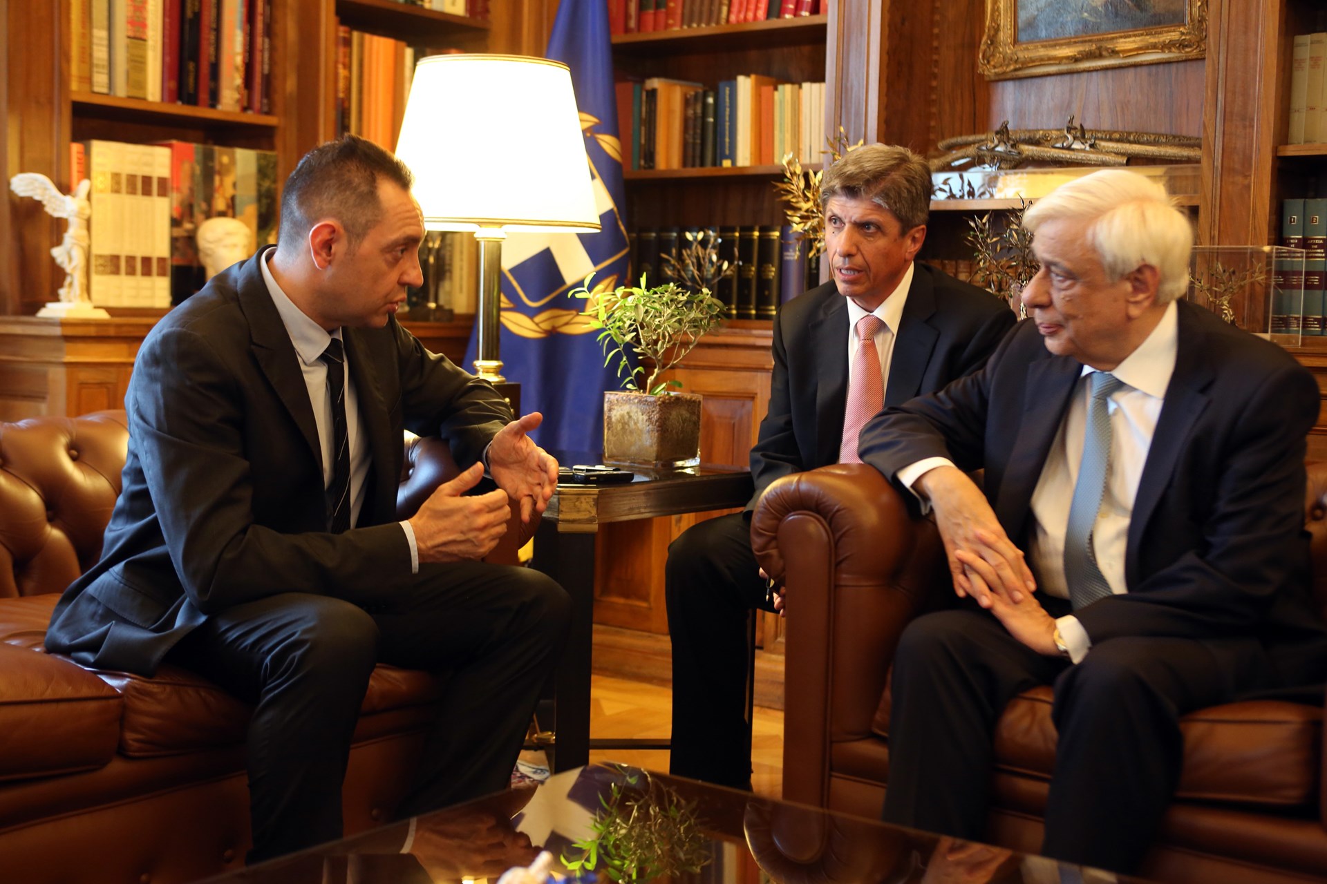 Το σεβασμό της Διεθνούς Νομιμότητας και του Ευρωπαϊκού Δικαίου από τις χώρες που επιθυμούν να έχουν ευρωπαϊκή πορεία, υπογράμμισε ο Πρόεδρος της Δημοκρατίας κ. Προκόπης Παυλόπουλος κατά την συνάντησή του, νωρίτερα σήμερα, με τον υπουργό Άμυνας της Σερβίας Αλεξάντερ Βούλιν, στο Προεδρικό Μέγαρο.