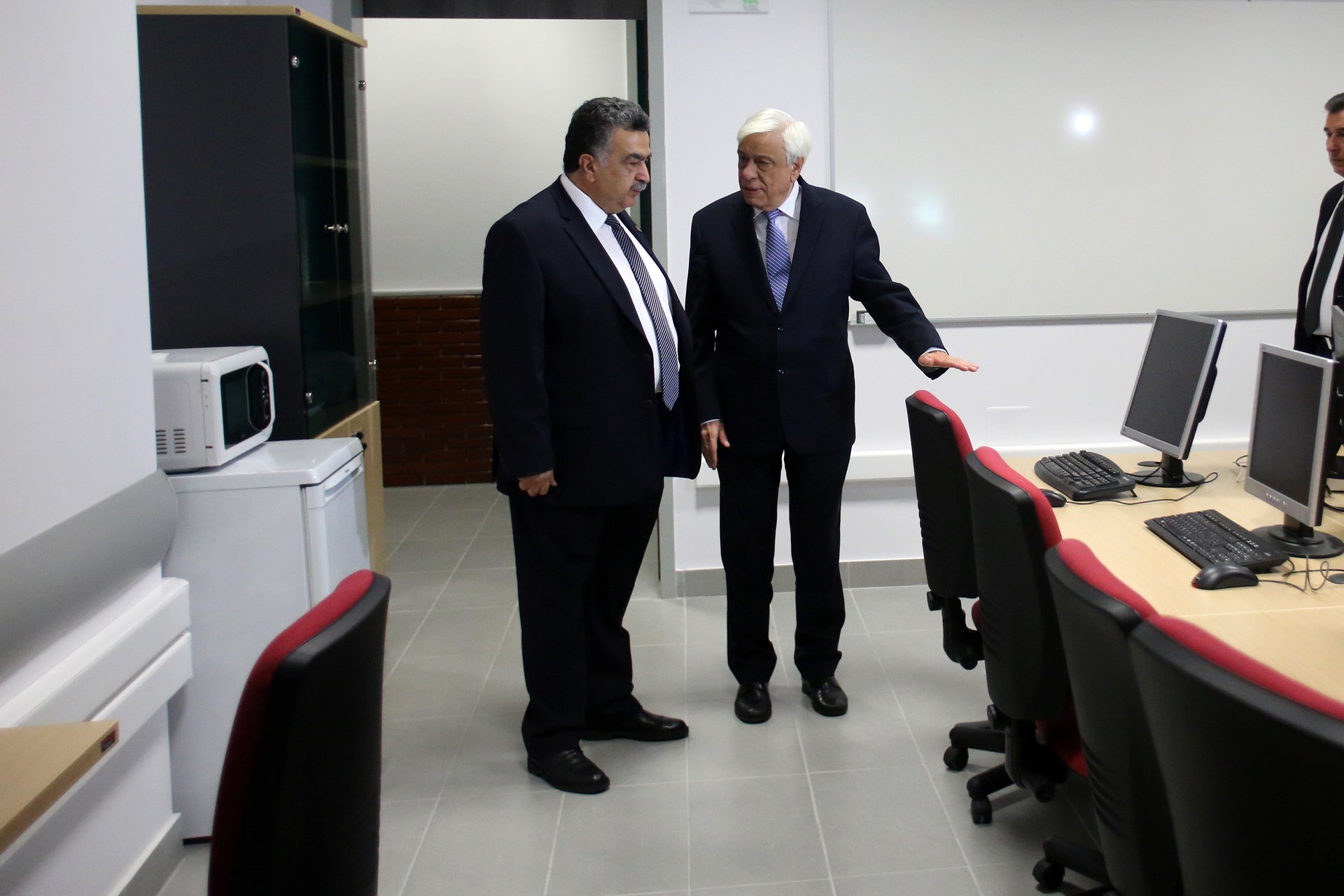 Μετά το πέρας της εκδήλωσης των εγκαινίων, ο Πρόεδρος της Δημοκρατίας ξεναγήθηκε στους χώρους του νέου κτιρίου του Πανεπιστημίου.