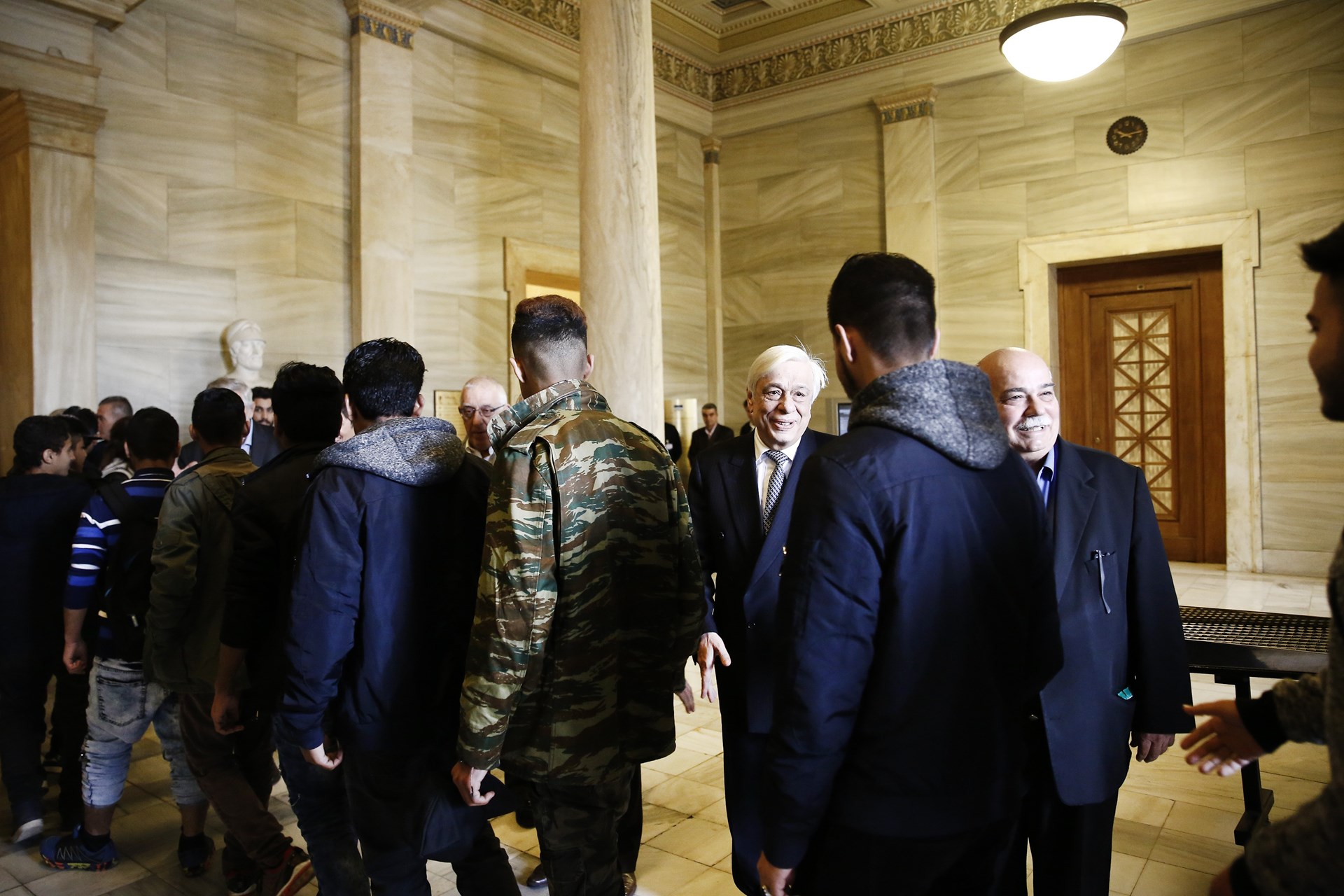 “Είστε κι εσείς παιδιά μας πια, ζείτε μέσα στην ελληνική κοινωνία” είπε, υποδεχόμενος τα παιδιά πρόσφυγες, ο Πρόεδρος της Βουλής και εξέφρασε τη συμπαράσταση όλων στην πολύ δύσκολη πορεία που τα έφερε μέχρι τη χώρα μας.