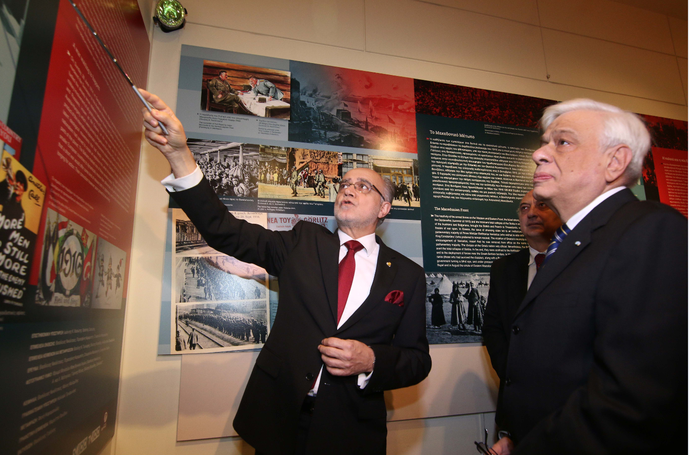 “Αισθάνομαι ιδιαίτερη τιμή εγκαινιάζοντας την Έκθεση για τα 100 χρόνια από την δημιουργία του Μακεδονικού Μετώπου. Η οποία φιλοξενείται στο θαυμάσιο νεοκλασικό κτίριο του Τσίλερ, το οποίο στα χρόνια του ένοπλου Μακεδονικού Αγώνα υπήρξε το μυστικό επιτελικό κέντρο του, έχοντας ως επικεφαλής τον πρόξενο Λάμπρο Κορομηλά. Πρόκειται για έκθεση που συνιστά πραγματικό εθνικό κειμήλιο, αφού αφορά την έκρηξη του Πρώτου Παγκοσμίου Πολέμου, τις συνέπειές του για τα Βαλκάνια, τις καθοριστικής σημασίας εξελίξεις στην εσωτερική πολιτική ζωή της Χώρας, αλλά και την επίδραση που είχε η παρουσία των συμμαχικών δυνάμεων της Αντάντ στην ζωή των κατοίκων της Θεσσαλονίκης και της Μακεδονίας γενικότερα”, είπε ο Πρόεδρος της Δημοκρατίας.