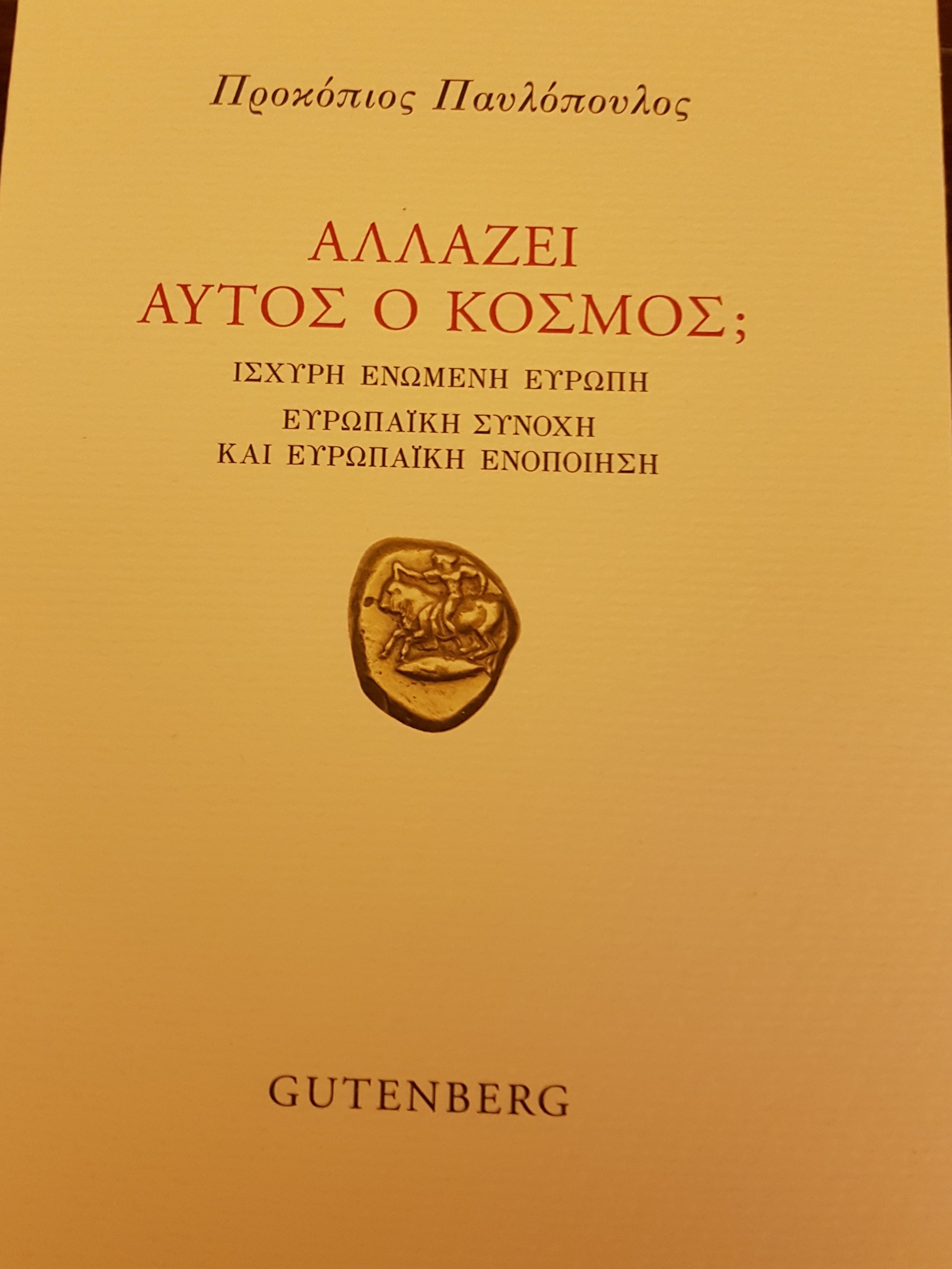 Στο βιβλίο , που κυκλοφορεί από τις εκδόσεις Gutenberg περιλαμβάνεται η ομιλία του Προκόπη Παυλόπουλου στο 4ο Τριετές Συνέδριο της Αθήνας με κεντρικό θέμα “Αλλάζει αυτός ο κόσμος;” .