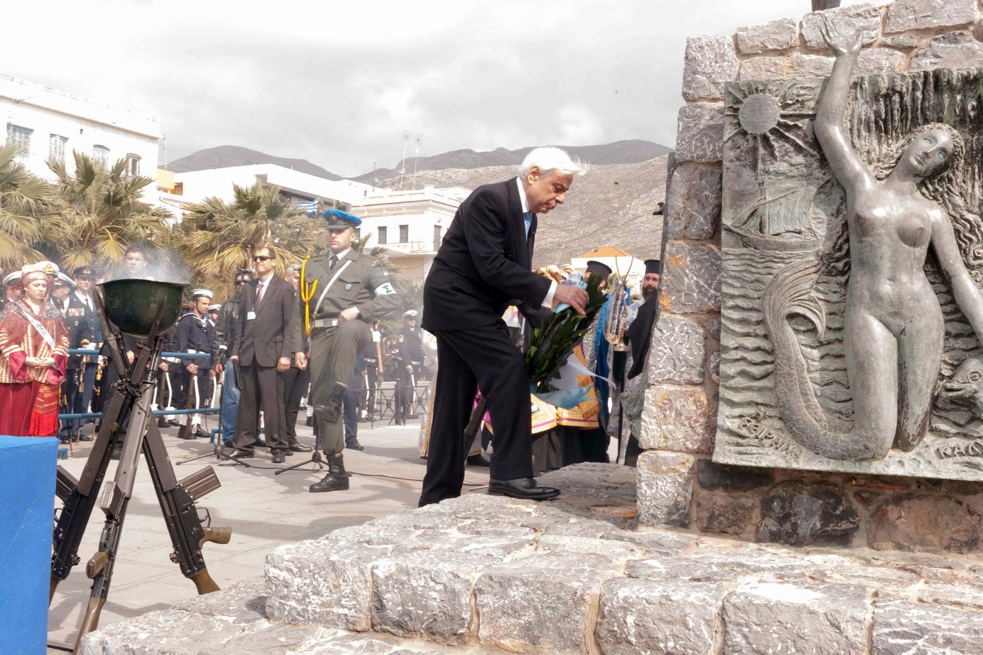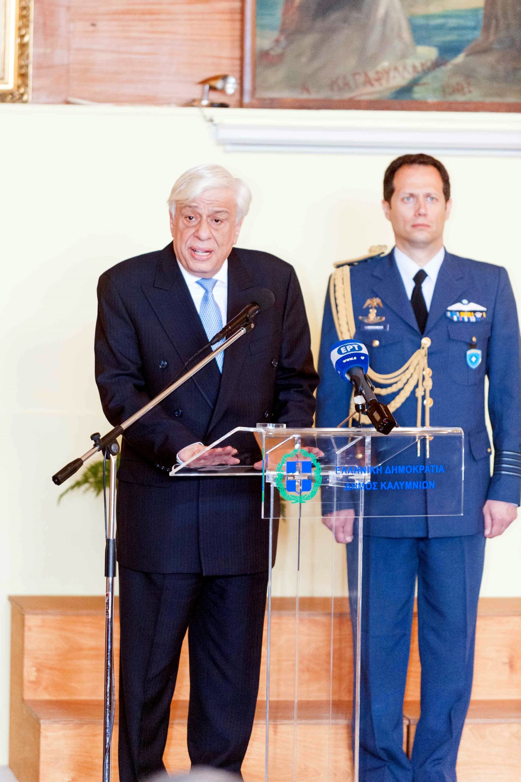 Νωρίτερα, ο Πρόεδρος της Δημοκρατίας είχε επισκεφθεί την Κάλυμνο, από όπου έστειλε διπλό μήνυμα προς κάθε κατεύθυνση αλλά κυρίως προς την Τουρκία, λέγοντας: «Τιμώντας σήμερα εδώ, στην ακριτική Κάλυμνο, την ιστορική Επέτειο της Ενσωμάτωσης των Δωδεκανήσων στον Εθνικό μας Κορμό, στέλνουμε προς κάθε κατεύθυνση –ιδίως δε προς την γείτονα και φίλη Τουρκία- το εξής διπλό μήνυμα:Πρώτον, η Ελλάδα επιδιώκει εμπράκτως –όπως το απέδειξε και προσφάτως με την στάση της υπέρ της νομίμως εκλεγμένης Τουρκικής Κυβέρνησης και εναντίον των αφρόνων πραξικοπηματιών- την ανάπτυξη στενών σχέσεων καλής γειτονίας και ειλικρινούς φιλίας με την Τουρκία και την ενεργό στήριξη της προσέγγισής της με την Ευρωπαϊκή Ένωση» σημείωσε ο Πρόεδρος της Δημοκρατίας και πρόσθεσε:«Δεύτερον, η Ελλάδα είναι αποφασισμένη, με βάση το διεθνές δίκαιο στο σύνολό του –κυρίως δε με βάση την Συνθήκη της Λωζάνης, της οποίας κάθε αμφισβήτηση είναι αδιανόητη- καθώς και με βάση το ευρωπαϊκό δίκαιο να υπερασπισθεί, και μάλιστα στο ακέραιο, τα σύνορά της, την εδαφική της ακεραιότητα και την κυριαρχία της, συνακόλουθα δε τα σύνορα, την εδαφική ακεραιότητα και την κυριαρχία της Ευρωπαϊκής Ένωσης».
