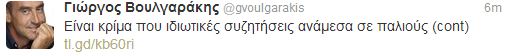 “Είναι κρίμα που ιδιωτικές συζητήσεις ανάμεσα σε παλιούς φίλους και συναγωνιστές- απο καθαρό και μόνο ενδιαφέρον, μετατρέπονται σε “επιχειρήματα” αλληλοεξόντωσης και εκκαθάρισης προσωπικών λογαριασμών. Προσωπικά είμαι από επιλογή εκτός πολιτικής και έχω δηλώσει κατ επανάληψη ότι δεν με ενδιαφέρει να ασχοληθώ σε κανένα επίπεδο και με κανένα κόμμα.Ως εκ τούτου, όσοι προσπαθούν να με εμπλέξουν καθ οιονδήποτε τρόπο, στις εσωτερικές τους διαμάχες, επειδή απλώς ο Πάνος Καμένος είναι φίλος μου, αν δεν κατάλαβαν λάθος, τότε εξυπηρετούν άλλα και σε κάθε περίπτωση, ύποπτα συμφέροντα.”