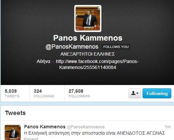 Οσο για τον Πάνο Καμμένο, απάντησε άμεσα τόσο κατά την διάρκεια της συνεδρίασης της Κοινοβουλευτικής Ομάδας του κόμματος, όσο και μέσω twitter: “Η ελληνική απάντηση στην αποστασία είναι ο ανένδοτος αγώνας”.