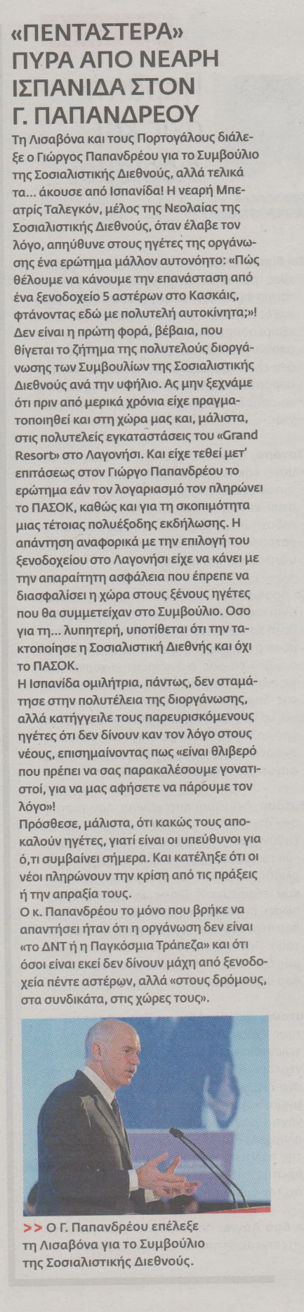 Τη Λισαβόνα και τους Πορτογάλους διάλεξε ο Γιώργος Παπανδρέου για το Συμβούλιο της Σοσιαλιστικής Διεθνούς, αλλά τελικά τα άκουσε από Ισπανίδα.