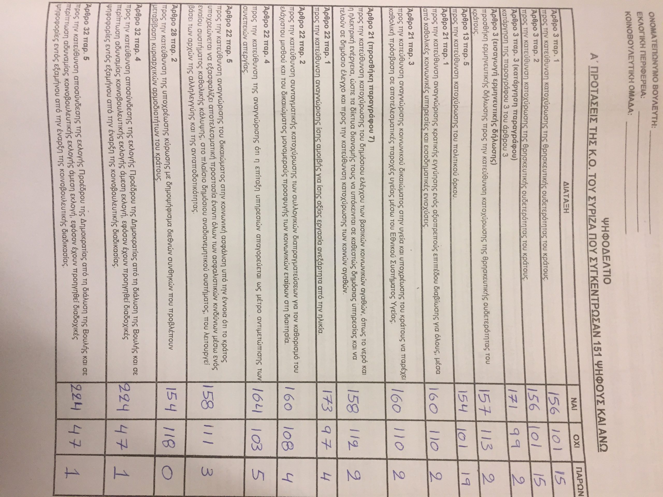 Οριακά κάτω από το 180 κινήθηκαν οι προτάσεις για καθιέρωση λαϊκής νομοθετικής πρωτοβουλίας, για την κατοχύρωση της απόλυτης προστασίας ζωής , τιμής και ελευθερίας χωρίς διάκριση φύλου, ταυτότητας φύλου και σεξουαλικού προσανατολισμού, για την εύρυθμη και απρόσκοπτη λειτουργία της διοίκησης σε νησιωτικές και ορεινές περιοχές.