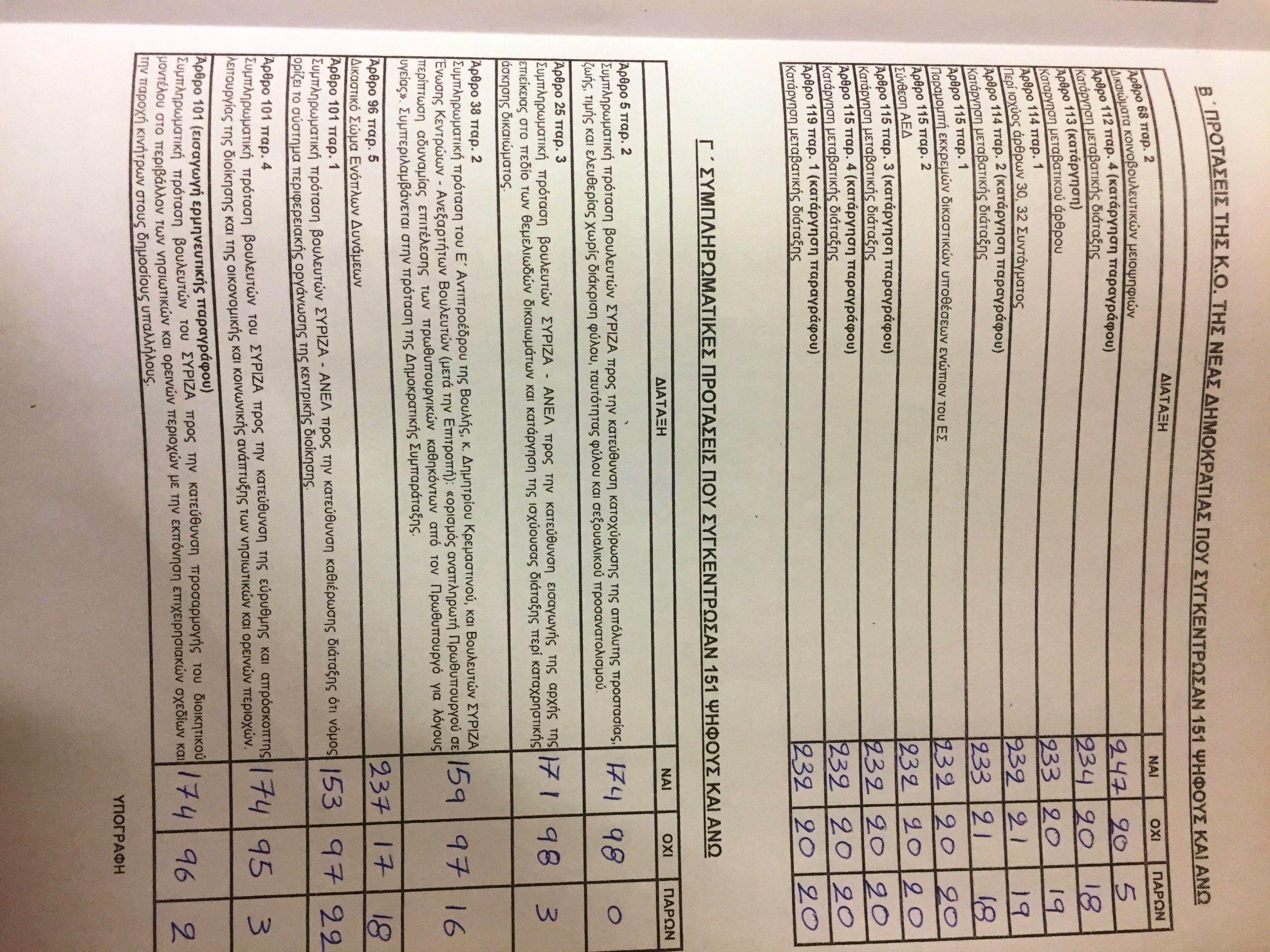 Με συντριπτική πλειοψηφία 255 ΝΑΙ έναντι μόλις 17 ΟΧΙ πέρασε η πρόταση για την τροποποίηση του άρθρου για την ευθύνη των Υπουργών και τη σύντομη αποσβεστική προθεσμία.