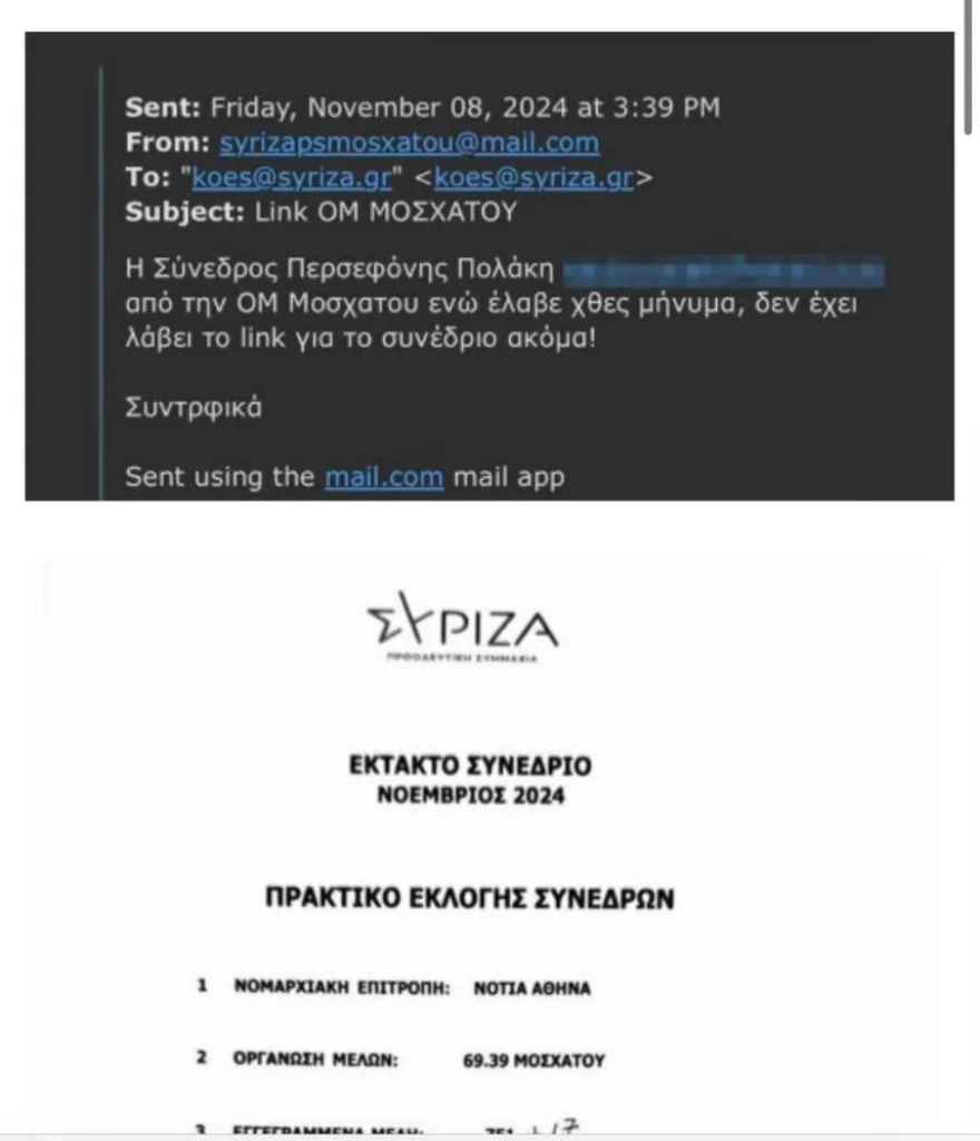 1) Συνομιλία του γραφείου του κ. Κασσελάκη με τα ΜΜΕ, όπου έσβησα εγώ το email μου