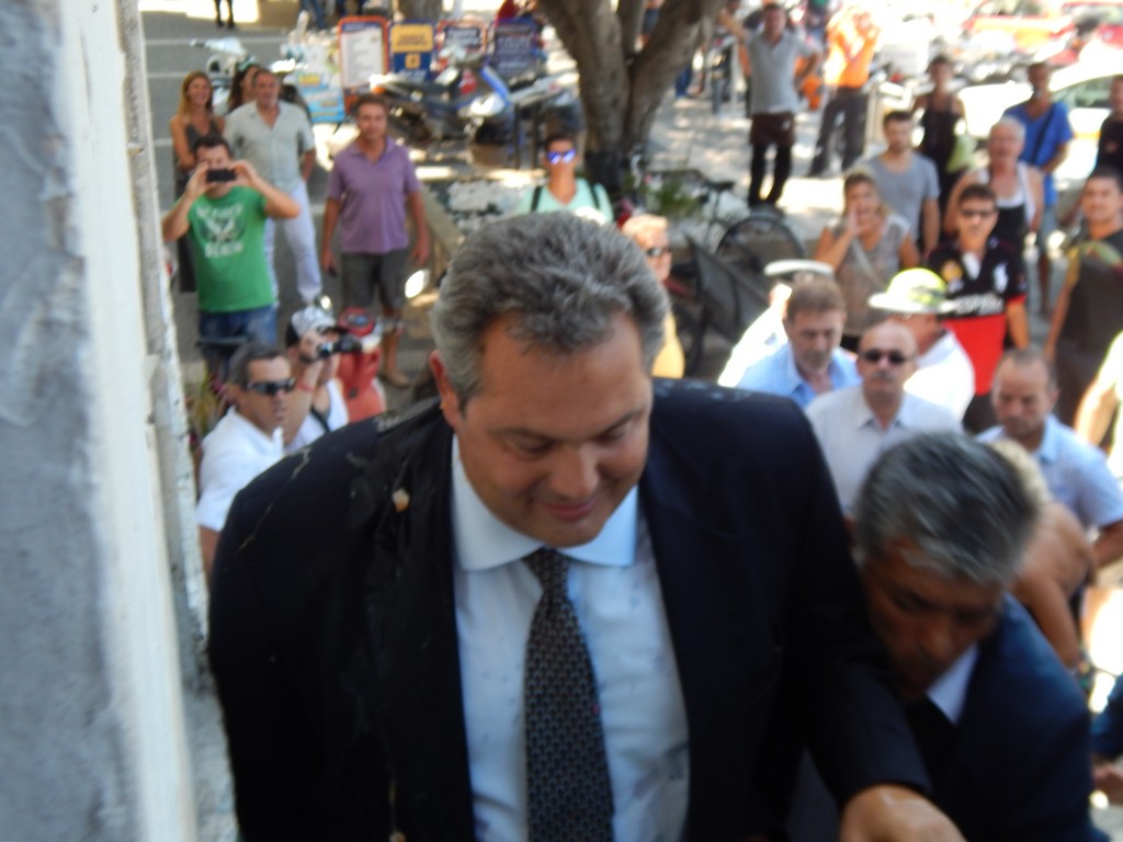 Με «γαλλικά», αυγά, αλλά και με μπουκάλια υποδέχθηκε μερίδα κατοίκων τον Υπουργό Άμυνας, Πάνο Καμμένο, στην Κω.