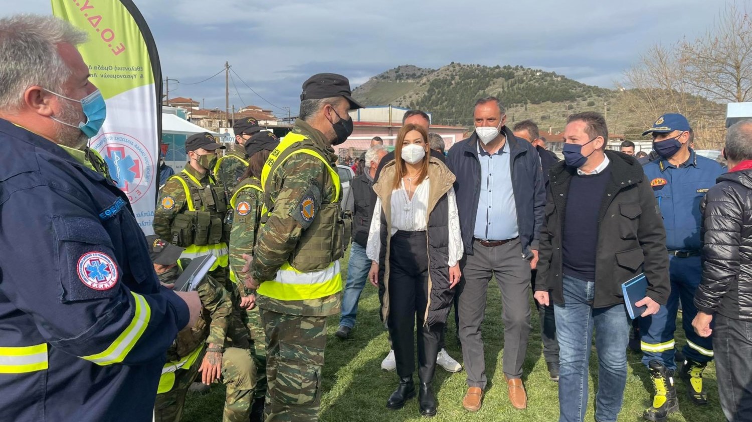 Ο υπουργός βρέθηκε στον χώρο του γηπέδου, όπου διαμένουν σεισμόπληκτοι και συνομίλησε με πολίτες. Σε προηγούμενες δηλώσεις του- είχε τονίσει ότι οι πληγέντες θα λάβουν άμεση αποζημίωση 600 με 6.000 ευρώ. Τον κ. Πέτσα συνοδεύουν ο περιφερειάρχης Θεσσαλίας Κώστας Αγοραστός και οι δήμαρχοι Τυρνάβου Γιάννης Κόκουρας και Ελασσόνας Νίκος Γάτσας.