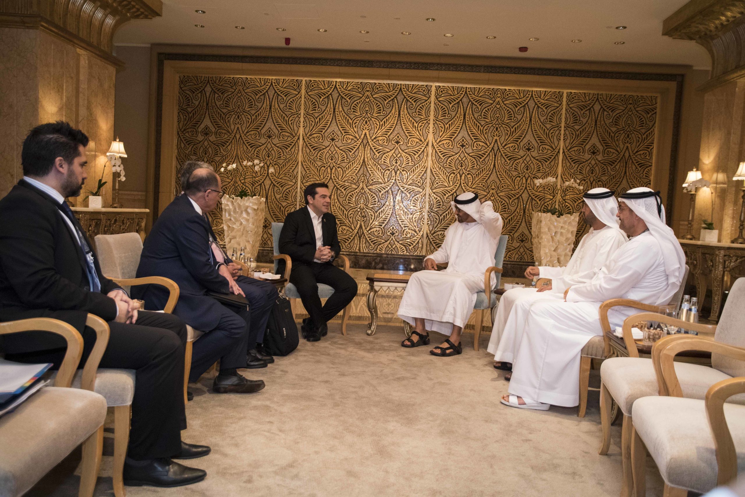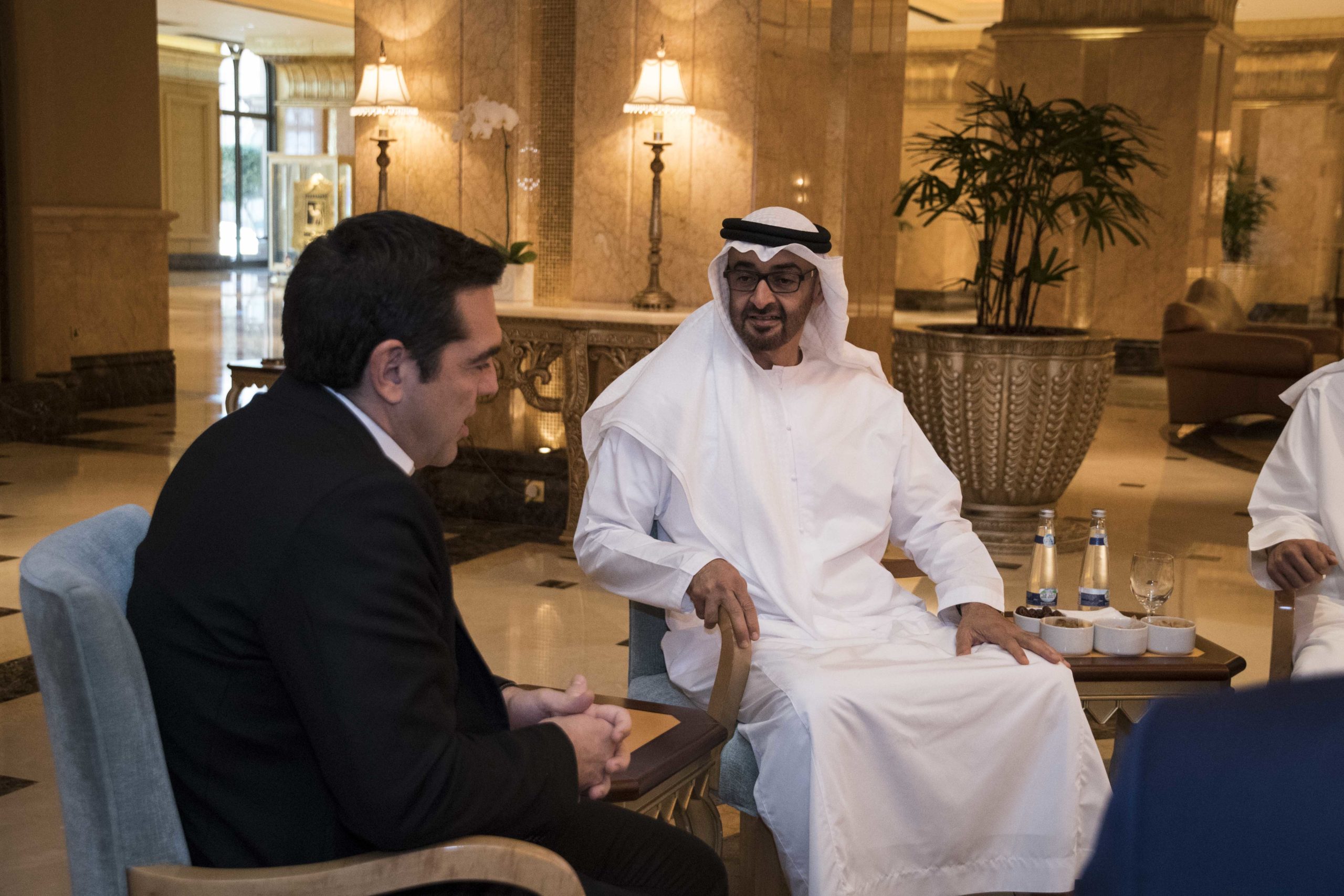 ΦΩΤΟ από τη συνάντηση του Τσίπρα με τον διάδοχο του θρόνου του Άμπου Ντάμπι