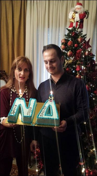Μάλιστα, σύμφωνα με το trikalavoice.gr, έσβησε τα κεράκια υπό τους ήχους του «ζήτω η Ελλάδα, ζήτω η θρησκεία, ζήτω η Νέα Δημοκρατία».
