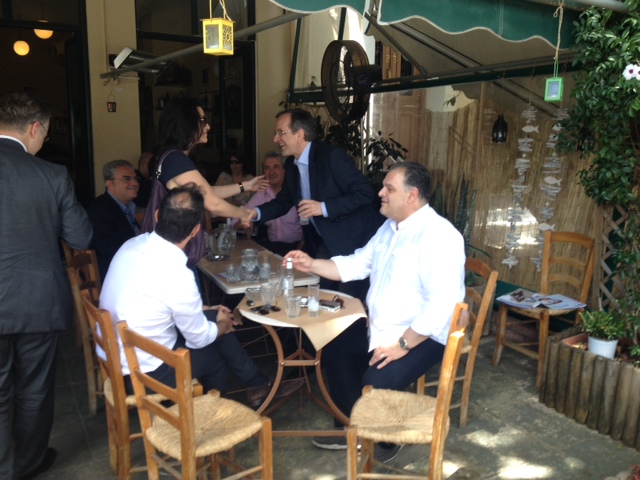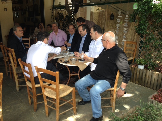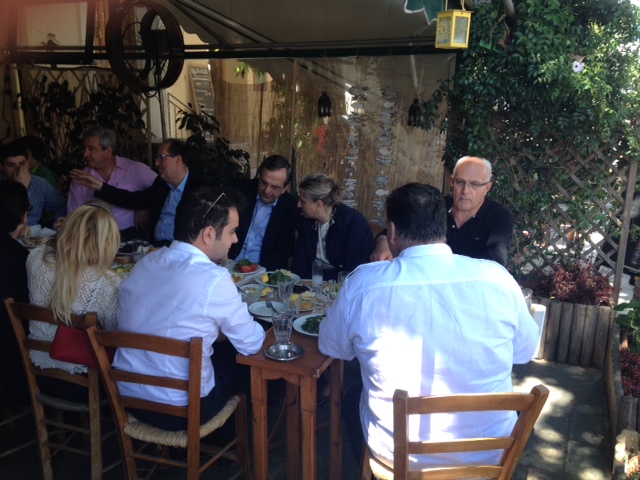 Ο κ. Σαμαράς, γευμάτισε με χαλαρή συζήτηση σε γνωστό μεζεδοπωλείο με τον δήμαρχο της πόλης Παναγιώτη Νίκα, τοπικά στελέχη και φίλους του.