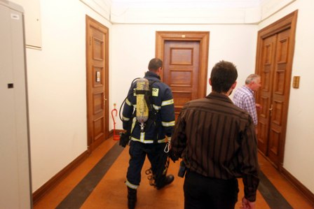 Όπου υπάρχει καπνός, υπάρχει και φωτιά. Τον καπνό είδαν το μεσημέρι να βγαίνει από τον τελευταίο όροφο της Βουλής και αμέσως σήμανε συναγερμός.Πυροσβεστική και υπάλληλοι της βουλής κινήθηκαν γρήγορα προς το μέρος από όπου έβγαινε ο καπνός. Ήταν στο γραφείο του πρώην γραμματέα της ΚΟ της ΝΔ, Κώστα Τασούλα.Η φωτιά αντιμετωπίστηκε πολύ γρήγορα και έτσι δεν επεκτάθηκε στους υπόλοιπους χώρους του κοινοβουλίου.Φαίνεται να ξεκίνησε από βραχυκύκλωμα στο κλιμακοστάσιο.