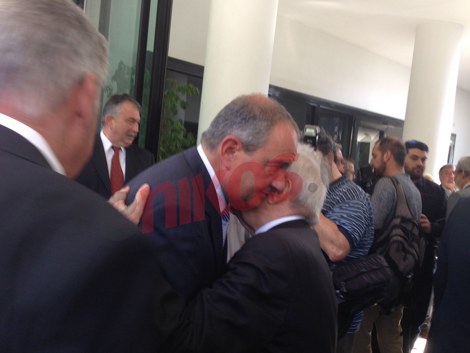 Με θερμό εναγκαλισμό υποδέχθηκε τον Κωνσταντίνο Καραμανλή ο Πέτρος Μολυβιάτης στο ίδρυμα Καραμανλή για το μνημόσυνο του ιστορικού ηγέτη και ιδρυτή της Νέας Δημοκρατίας.