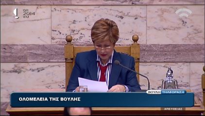 Με κοστούμι και γραβάτα εμφανίστηκε στη σημερινή συνεδρίαση της Ολομέλειας η Μαρία Κόλλια-Τσαρουχά.