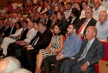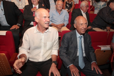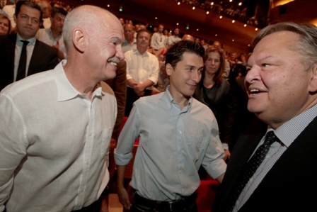 Ο Γιώργος Παπανδρέου κάθισε στην πρώτη σειρά ανάμεσα στον δήμαρχο Αθηναίων, Γιώργο Καμίνη και τον γραμματέα της νεολαίας του ΠΑΣΟΚ, Παύλο Χρηστίδη.