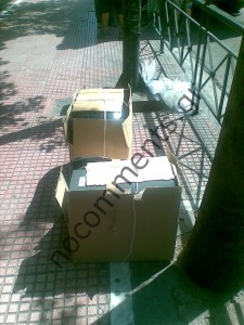 Σε άλλες κούτες είχαν τοποθετηθεί τα μηχανήματα Fax , τα εκτυπωτικά και τα υλικά γραφείου.