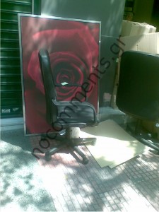 Η καρέκλα του προέδρου κι ένας από τους αγαπημένους του πίνακες με ένα άλικο τριαντάφυλλο.