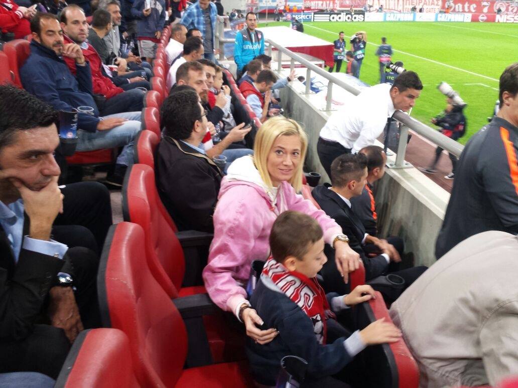 Η ανεξάρτητη βουλευτής φωτογραφήθηκε με τον γιο της στο φαληρικό γήπεδο, τον οποίο θεωρεί γούρι, όπως έγραψε στον προσωπικό της λογαριασμό στο Facebook.