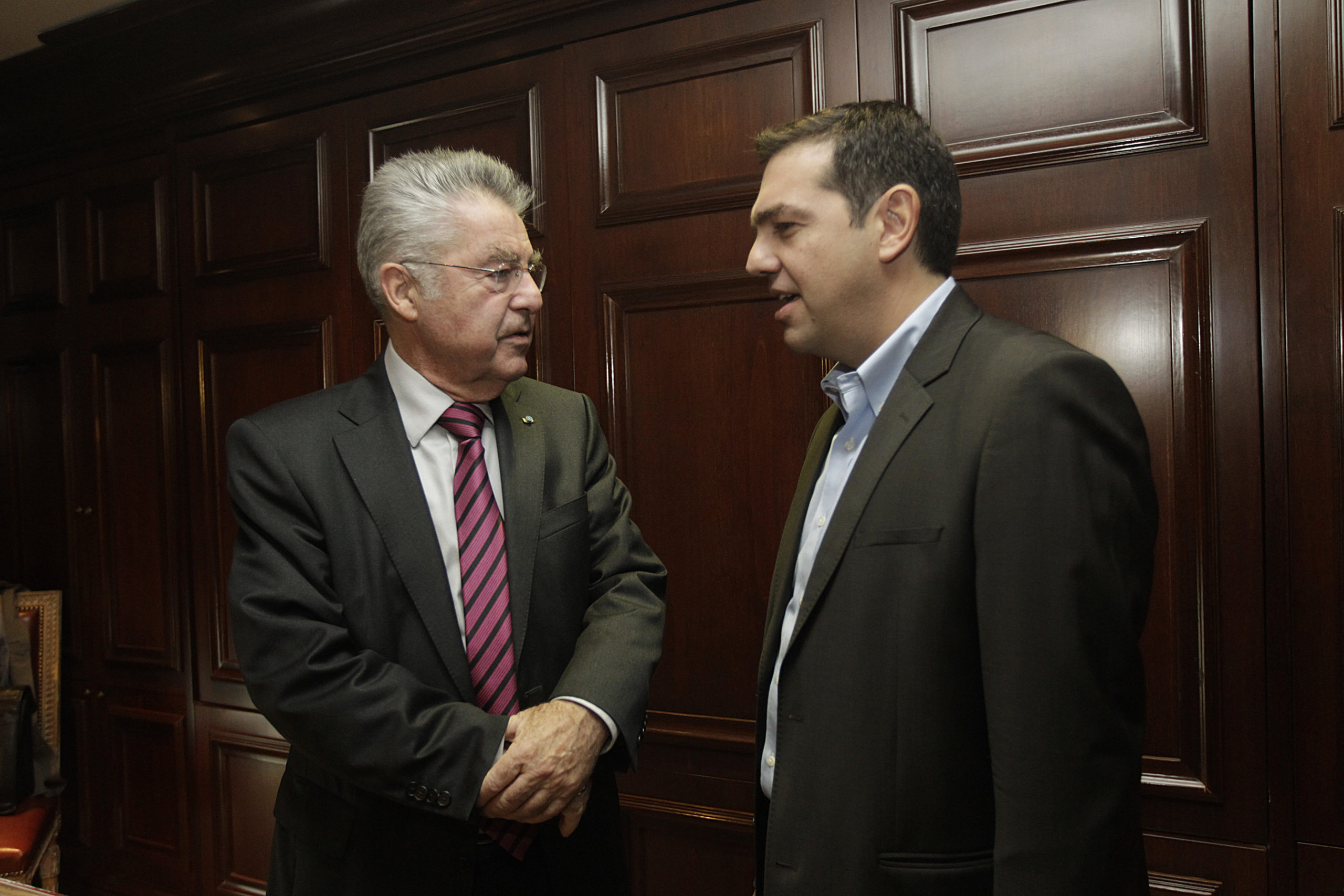 Ο πρόεδρος του ΣΥΡΙΖΑ, Αλέξης Τσίπρας συναντήθηκε σήμερα με τον πρόεδρο της Αυστρίας, Χάινς Φίσερ. Στη συνάντηση, η οποία είχε εθιμοτυπικό χαρακτήρα, οι δύο πλευρές αντάλλαξαν απόψεις γύρω από την ελληνική και ευρωπαϊκή κρίση.